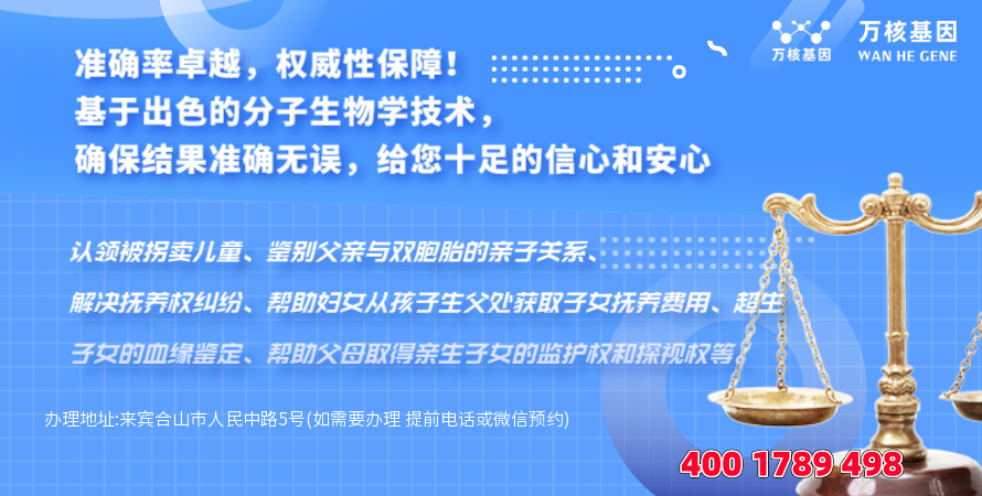 合山司法dna亲子鉴定办理地址:来宾合山市人民中路5号(如需要办理 提前电话或微信预约)-预约电话:4001789498。
